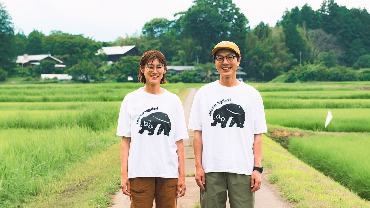 2017年、真梨子さんの故郷である那須町にUターン移住し、家業である稲作農家を継いだ二人は、お米づくりのかたわら、「田んぼカフェ」やショップ「たぬき社」の運営など、農作物の生産者と消費者の距離を近づけるための活動を行っています。